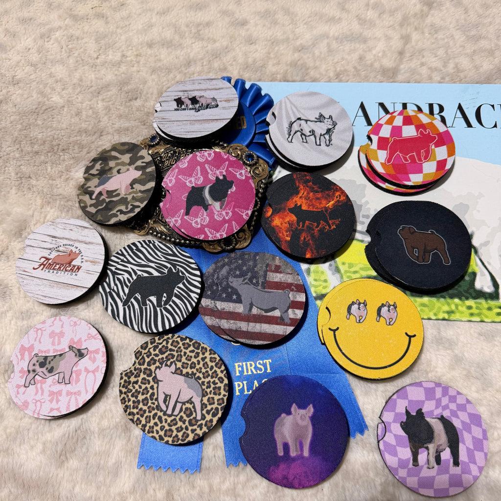 A cute accessory for your car. These are soft flexible, easy to clean, absorbent neoprene material.
