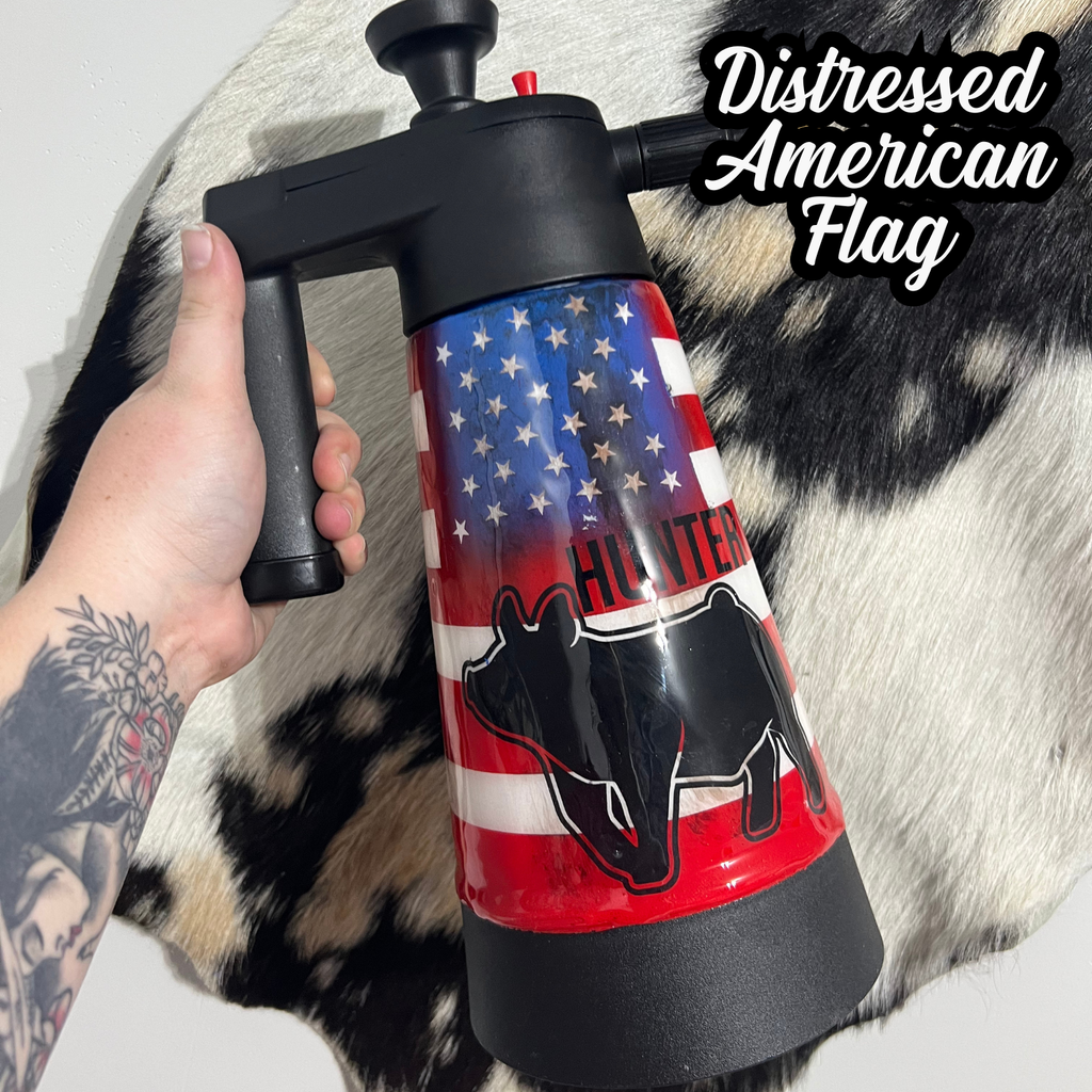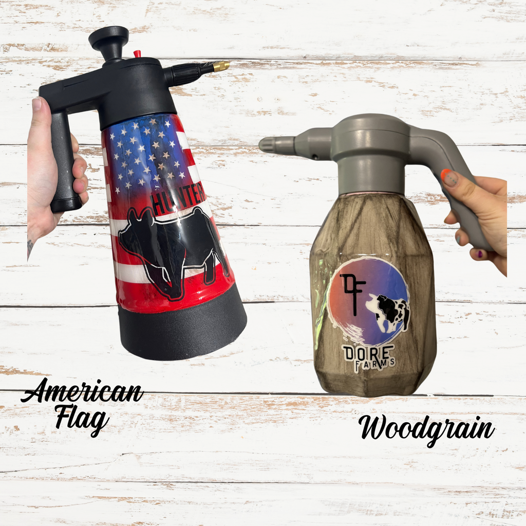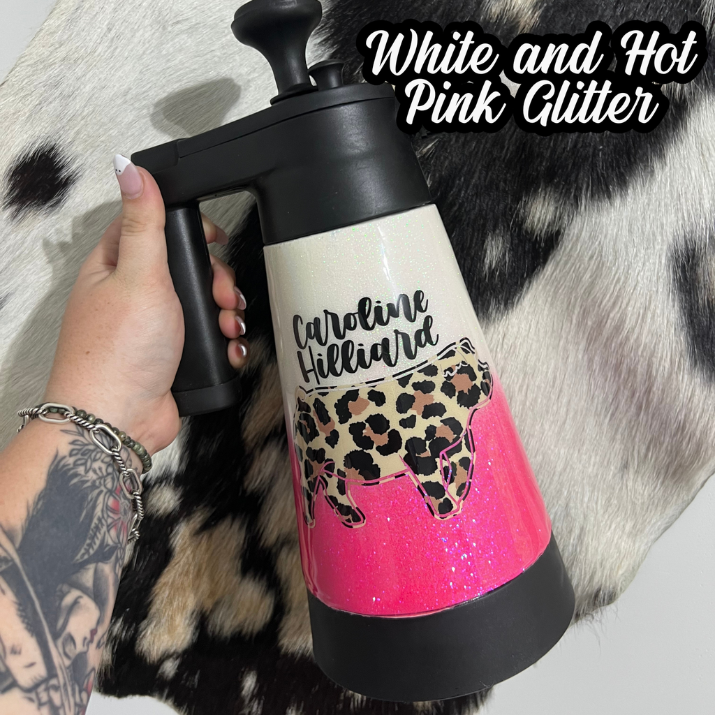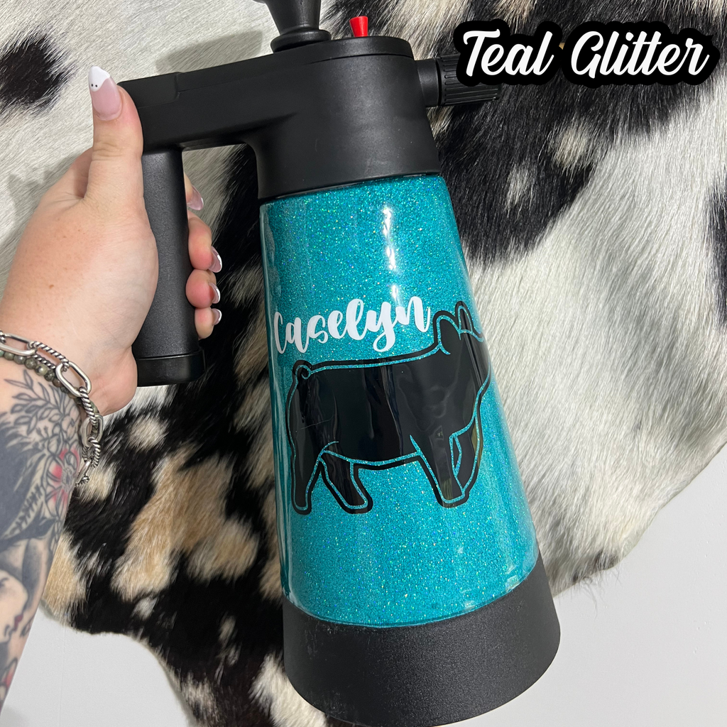 Custom epoxy sprayer & brush, can add name, quote, or any animal, if you do not specify what you are wanting (quote, animal, decal colors, cow print color) I will make my best judgment on it. If you are wanting something breed specific (example spot pig) and do not see it offered, please put it in your description box, if I have questions I will email you. If you know what you want but it’s not offered please email me at back.in.the.barn.boutique@gmail.com