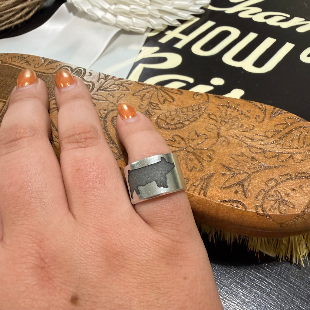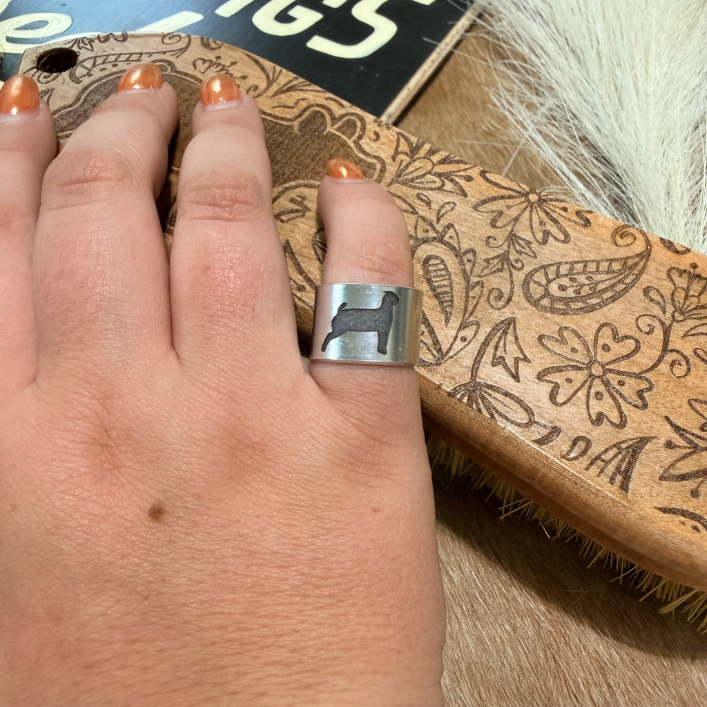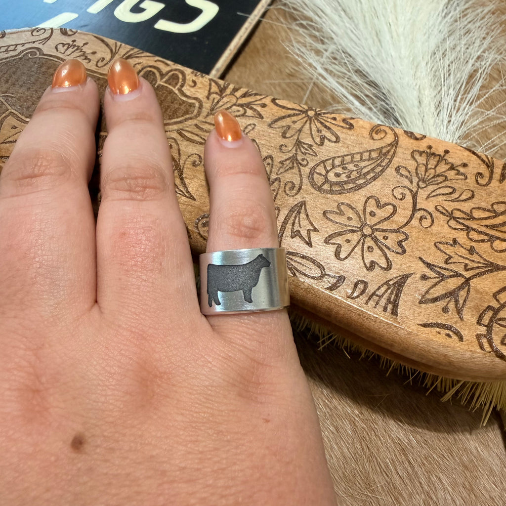 Engraved adjustable ring band, available in sizes 4-6 and 7-9