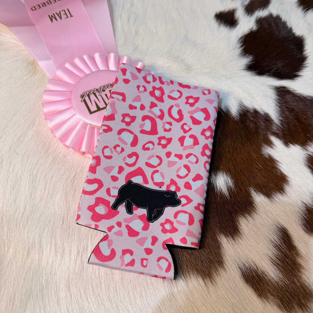 Slim style koozie with black livestock image on one side